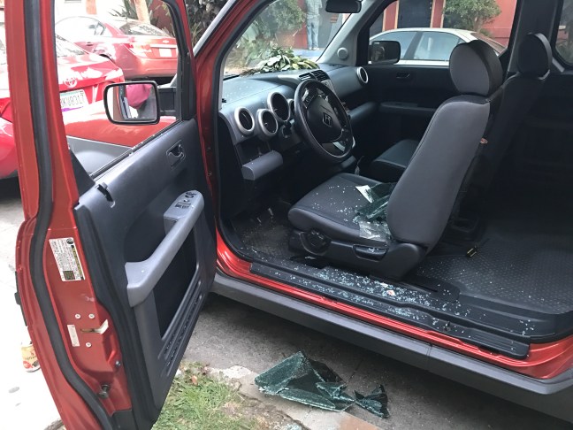 My poor ’04 Honda Element (named Scout) was broken into and $710 worth of belongings was stolen.